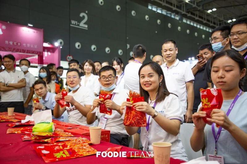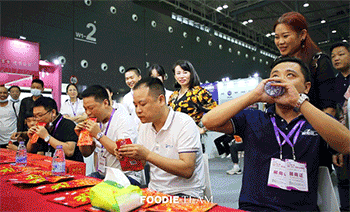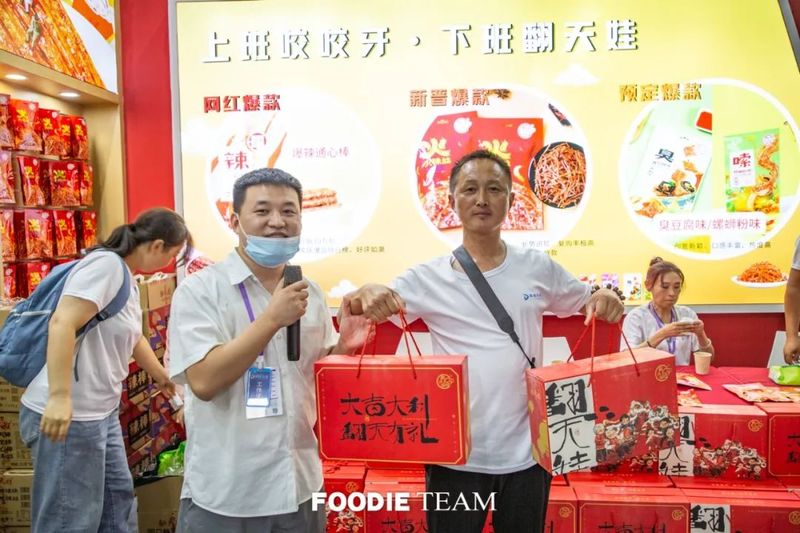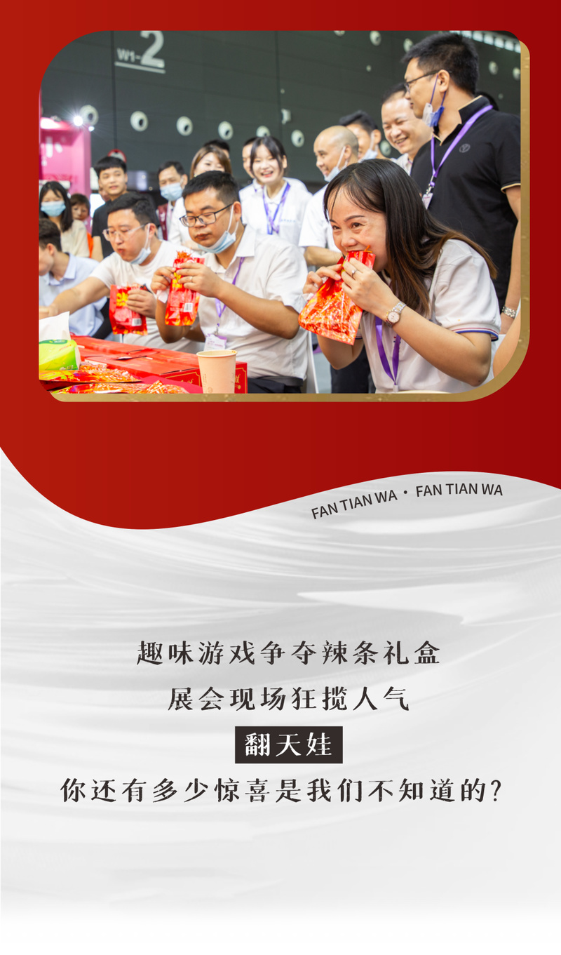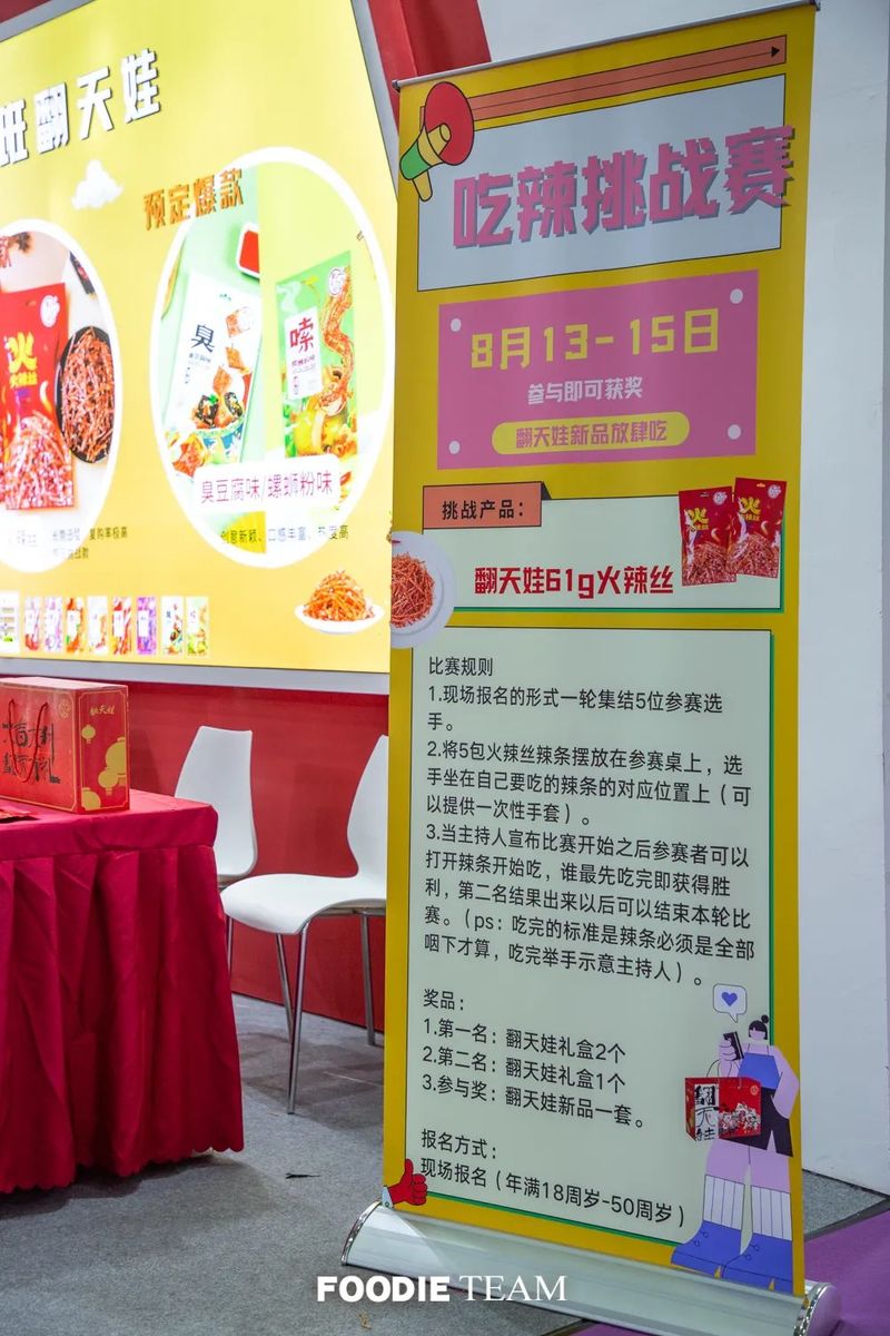 展會(huì)現(xiàn)場,翻天娃如火如荼的開展了多輪【吃辣挑戰(zhàn)賽】。參與即可獲獎(jiǎng)的參賽設(shè)置,吸引了大量圍觀群眾踴躍報(bào)名,誰能抵擋得住辣條頂流的誘惑呢。