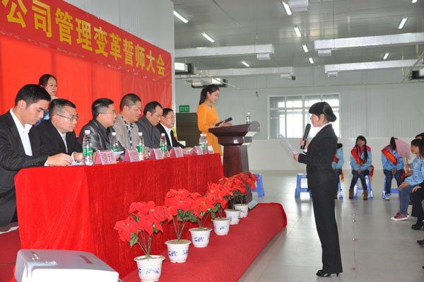 管理變革領(lǐng)導(dǎo)小組在領(lǐng)誓人劉文波副總經(jīng)理的帶領(lǐng)下,鄭重宣誓,“我們決心以翻天娃利益為重,群里推動變革,徹底執(zhí)行決策;贛榆面度問題,主動解決問題;贛榆接受批評,主動承擔(dān)責(zé)任,贛榆自我批評、主動接受監(jiān)督發(fā)揚(yáng)工匠精神,實(shí)現(xiàn)變革目標(biāo)!”