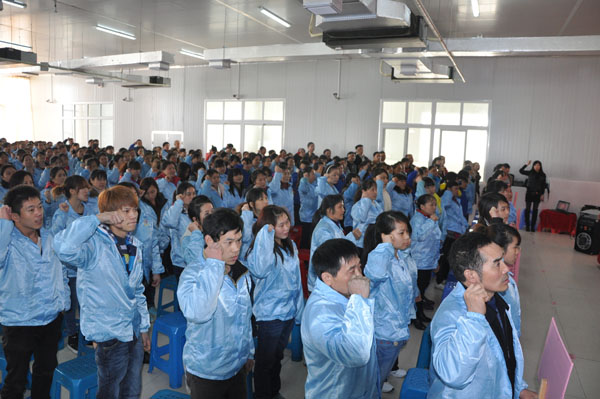 稍后在領(lǐng)誓人戴翠娥帶領(lǐng)下,員工集體宣誓“我們決心以高昂的熱情,認(rèn)真負(fù)責(zé)的態(tài)度,積極參與變革。牢記:相信、經(jīng)緯、謙虛、踏實(shí)、責(zé)任、團(tuán)結(jié)、公正、感恩、付出、認(rèn)真。勤奮努力,用心工作,為翻天娃的振興而拼搏!”