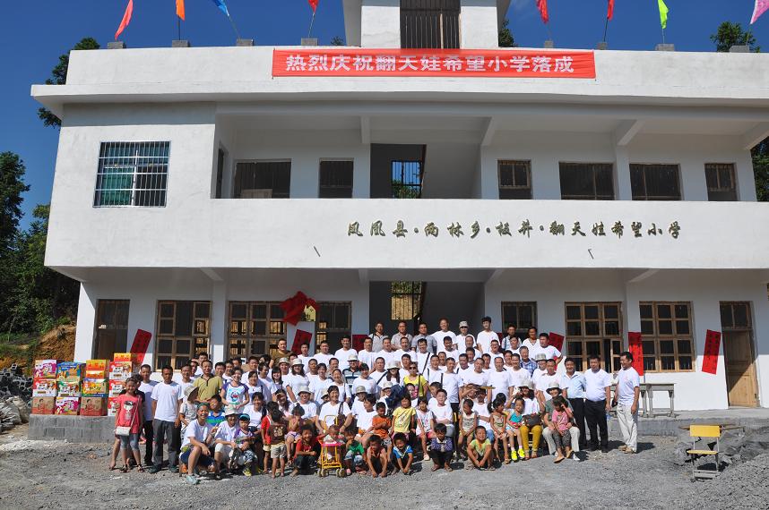 翻天娃希望小學(xué),原名板井小學(xué),位于湘西鳳凰縣兩林鄉(xiāng)板井村,由于地處山區(qū),交通不便,經(jīng)濟落后,學(xué)校設(shè)施非常簡陋,全校只有一位老師和一位支教教師,全校70多名學(xué)生都記在一棟上世紀(jì)70年代建的教學(xué)樓里,由于年舊失修,教學(xué)樓已屬危房,隨時都有倒塌的危險。